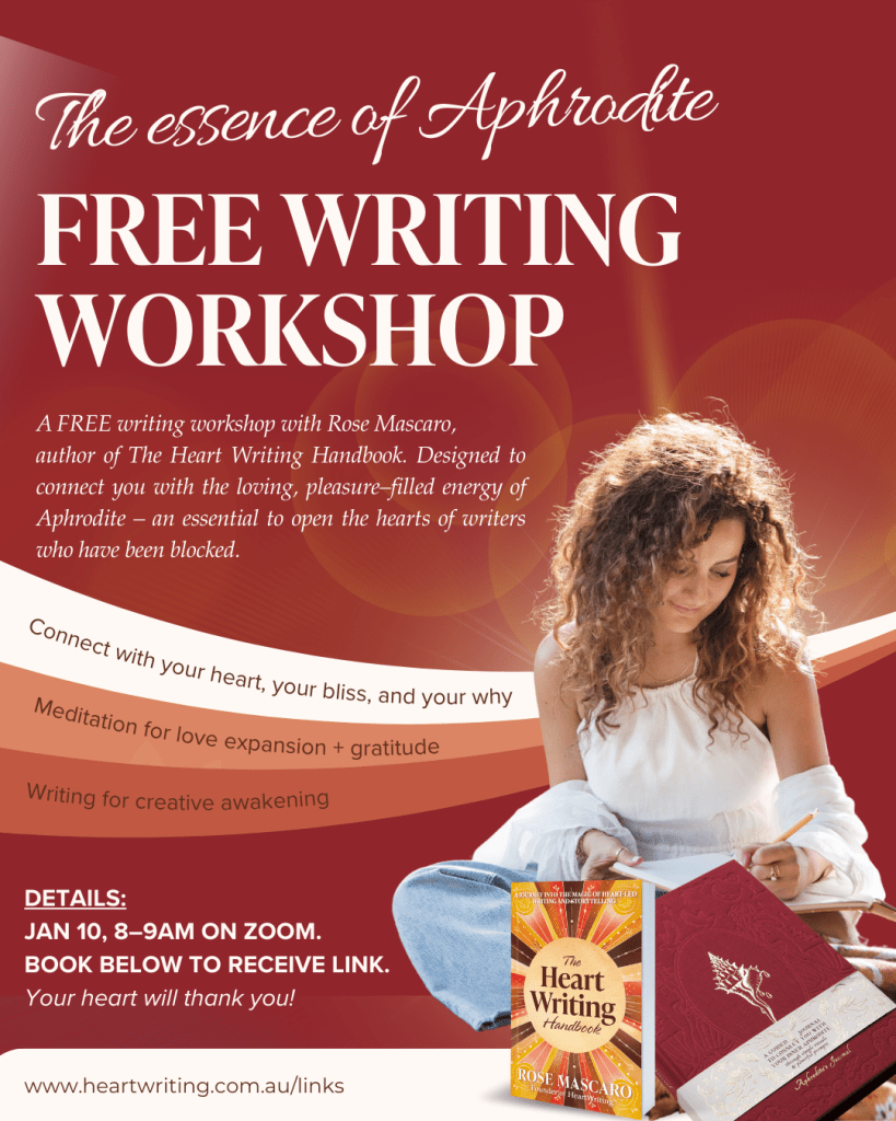 Learn the magic of HeartWriting® with Rose Mascaro – Australian author, editor, and creative writing specialist, who is passionate about teaching writers how to connect with their most authentic, heart-led words.